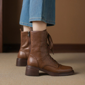 真皮马丁靴女2025新款春秋单靴瘦瘦靴英伦风大码圆头粗底短靴女