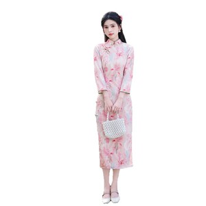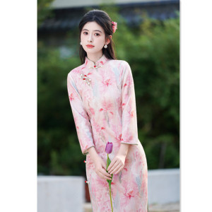 曼丽绒单层年轻少女款长裤七分袖旗袍2025秋新款复古国风日常旗袍