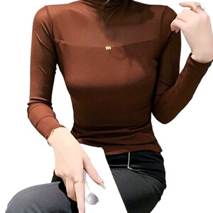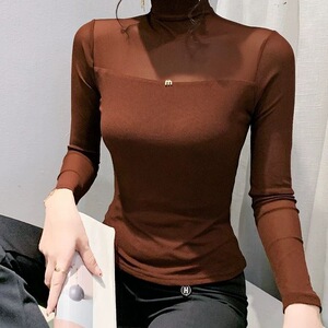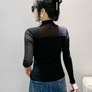 胖mm秋冬2025新款半高领打底衫女内搭可外穿网纱上衣缕空长袖上衣