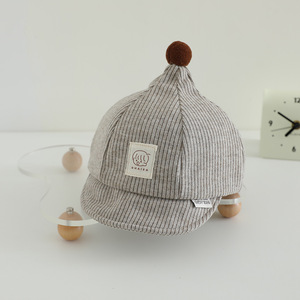 婴儿帽子春秋韩系男童可爱啾啾鸭舌帽ins条纹女童宝宝冬季防风帽