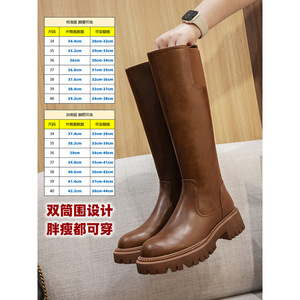 【2种筒围】厚底骑士靴长靴女胖mm大筒围高筒靴大码厚底棕色加绒