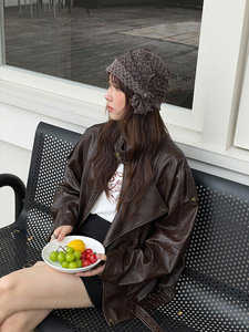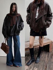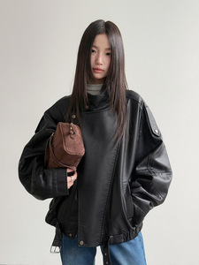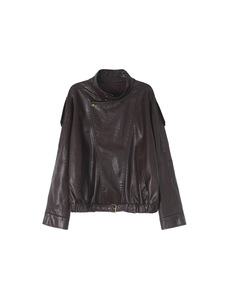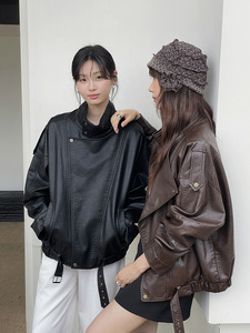 【重磅 英区时差】歌铭复古立领斜拉链皮衣外套秋季长袖上衣N423C