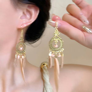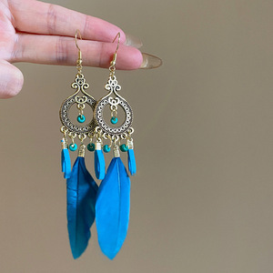 超仙流苏耳钩夏日复古民族波西S925银针耳环出游拍照羽毛旅游耳饰
