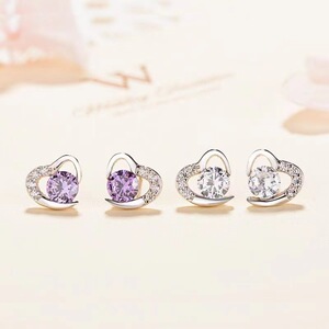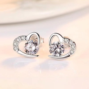 精致镂空爱心耳钉女轻奢小众高级感爆闪锆石心形耳环气质甜美耳饰