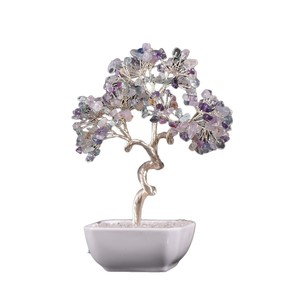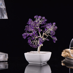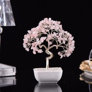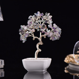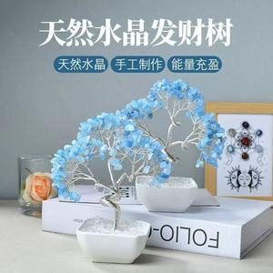 天然水晶海蓝宝生命树陶瓷底座树创意发财树招财摆件新中式风