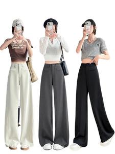 灰色西装裤女春秋季2025新款裤子高腰直筒宽松休闲垂感拖地阔腿裤