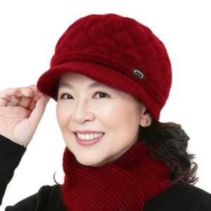 新款菱形妈妈帽护耳贝雷帽秋冬防寒加绒加厚针织毛线帽时尚保暖