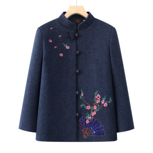 中老年女装秋冬装洋气毛呢外套妈妈装秋装上衣奶奶装立领呢子大衣