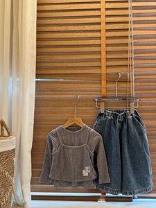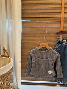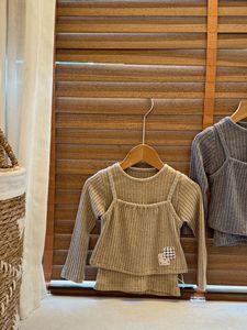 韩系中小童装2025秋季新款儿童条纹圆领打底女童上衣两件套套装
