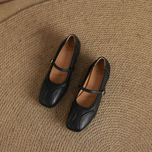 法式玛丽珍小皮鞋3cm跟2025秋新品方头羊皮一字扣带浅口粗跟单鞋