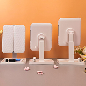台式桌面led化妆镜子带灯三折叠便携补光贝壳镜充电款情人节礼品