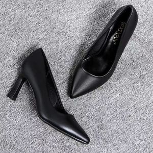 2023新高跟单鞋女粗跟工作鞋软皮防水台复古皮鞋舒适时尚