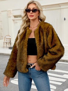新款欧美跨境短款仿皮草外套开衫秋冬女装毛绒外套大衣F0950
