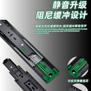 加厚抽屉轨道滑轨阻尼缓冲家用静音衣柜开合反弹304不锈钢三节轨