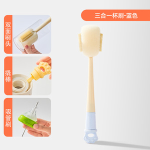 猫爪杯刷(3合1)-蓝色+替换海绵刷头*3
