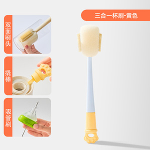 猫爪杯刷(3合1)-黄色+替换海绵刷头*3