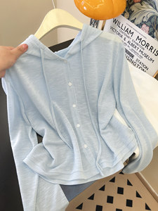 广州十三行高货爆款~夏日韩系舒适单排扣防晒衣女装外套连帽上衣