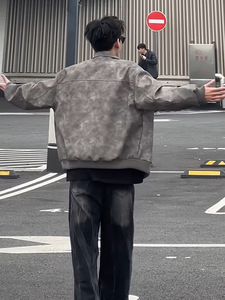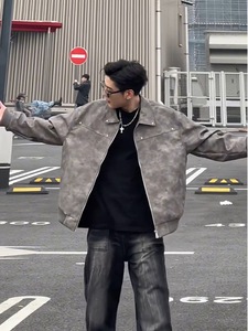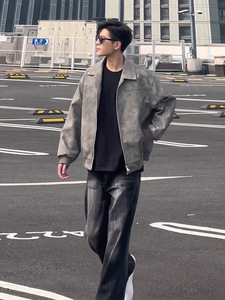 美式复古cleanfit夹克外套男痞帅高级感男士外套翻领机车皮夹克男