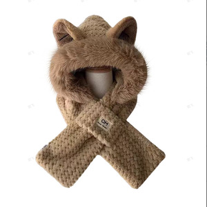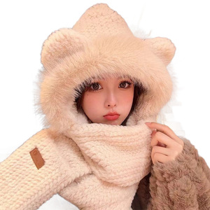 可爱小熊帽子女保暖帽子围巾手套一体帽子冬季可爱加绒保暖防护帽