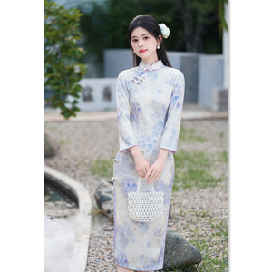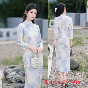 复古中国风长款曼丽绒七分袖旗袍2025秋新款气质修身日常可穿旗袍