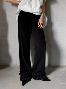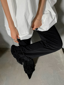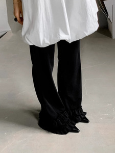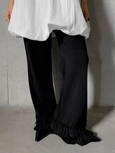欧美跨境新款2025秋季花边裤子直筒阔腿裤女雪纺宽松木耳边休闲裤