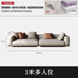 意式极简布艺沙发地平线布艺沙发棉麻直排高端棉麻布沙发大小户型