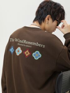 复古潮牌撞色印花设计廓形圆领卫衣秋款宽松休闲运动套头衫外套q
