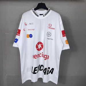 巴黎B家高版本多位LoGO经典赛车服印花刺绣宽松运动男女短袖t恤