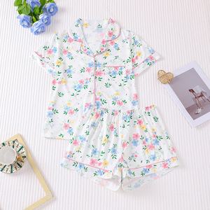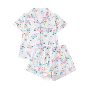 跨境外贸睡衣四季印花翻领宽松短袖短裤女士家居服women pajamas