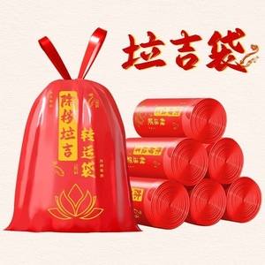 除秽拉吉转运塑料袋加厚家用手提式红色吉祥免撕抽绳垃圾袋新款