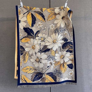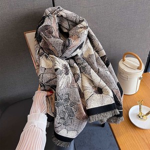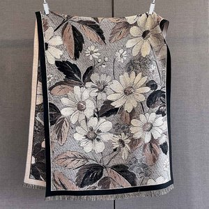 秋季新款仿羊绒围巾植物花卉印花围巾两用多功保暖氛围感围脖披肩