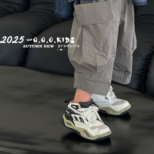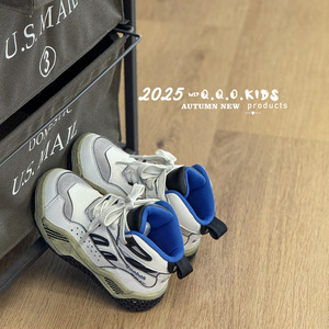 QQO童鞋 2025秋季新款儿童高帮篮球鞋男女童联名款复古做旧运动鞋