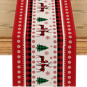 跨境热销亚麻桌旗圣诞节雪人居家餐厅客厅餐桌室内节日装饰桌布