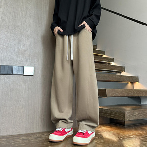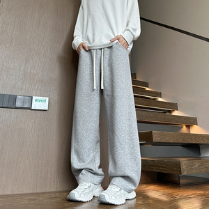 灰色重磅弯刀卫裤男款高级感垂感运动裤子美式宽松直筒休闲阔腿裤