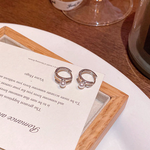 韩系甜美简约双圈耳钉轻奢小众个性时尚气质珍珠耳环网红耳饰批发