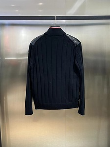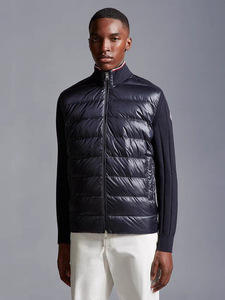 现货M家彩条拼接针织羽绒服蒙家立领保暖毛衣针织袖子薄羽绒外套