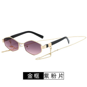 跨境新款时尚多边形金属太阳镜女ins风个性街拍防晒太阳眼镜欧美
