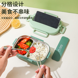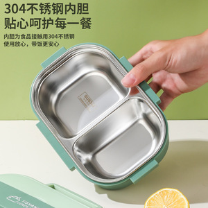 304不锈钢家用饭盒学生上班族便捷保温儿童餐盘分格便当盒日式