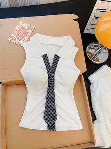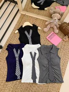 小众格纹领带设计感修身外穿内搭小上衣2025夏季设计感女辣妹背心