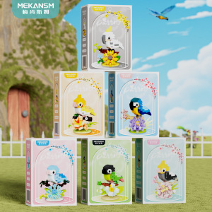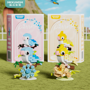 兼容乐高小鸟鹦鹉积木花彩鹦栖枝动物儿童益智玩具地摊批发代发