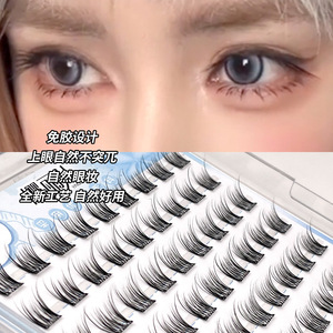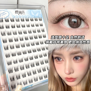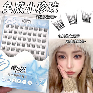 樱丽儿免胶珍珠少女假睫毛自然仿真分段式透明梗大容量懒人眼睫毛