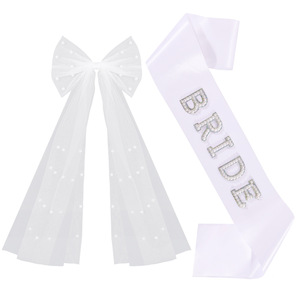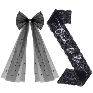 跨境新款新娘蝴蝶结头纱肩带2件套蕾丝礼仪带单身派对头饰配饰