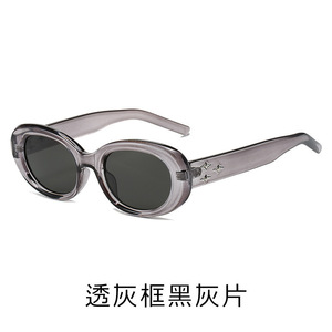 新款韩版gm个性辣妹风美式墨镜三个星星复古椭圆小框高级感太阳镜