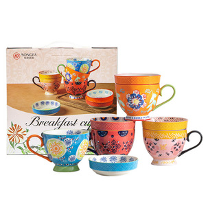 哇噢定制松发瓷器带盖早餐杯大容量陶瓷马克杯咖啡杯早餐盖杯套装