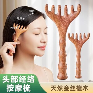 多功能檀木按摩梳头皮经络梳五齿梳头部按摩头疗美发木梳厂家批发