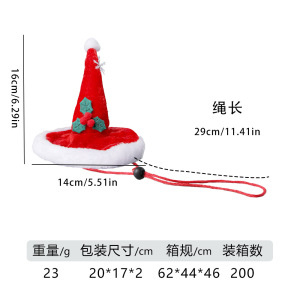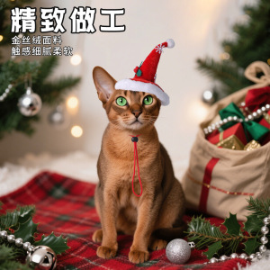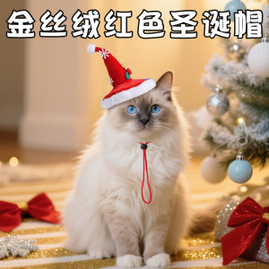 跨境圣诞节新款金丝绒红色圣诞帽 猫咪狗狗圣诞氛围装饰宠物用品
