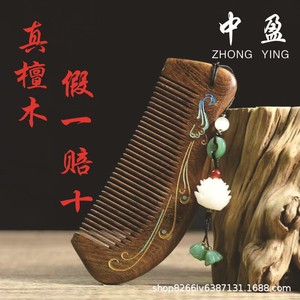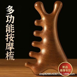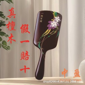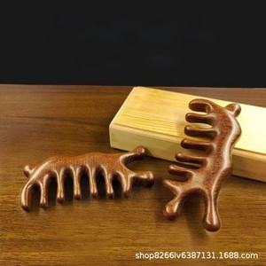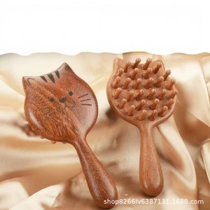 小猫檀木按摩梳子头部经络头皮女士随身携带顺发木质钉钉圆齿梳