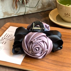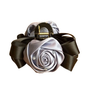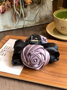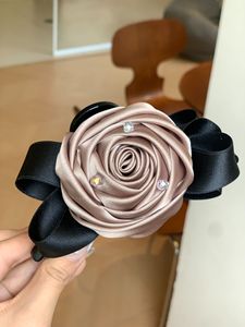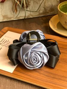 新款法式玫瑰花缎面双面13公分抓夹高级感发夹发饰蝴蝶结花苞头饰