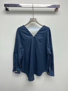 南油高定2025初秋新款中古风法式花边拼接V领长袖衬衫重工高级气