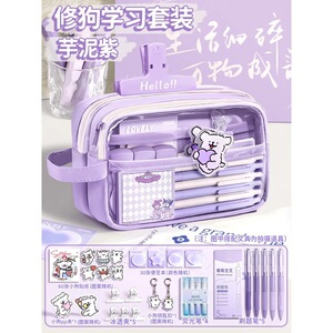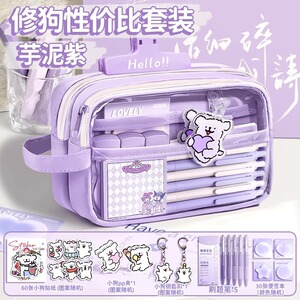 【学习套装】芋泥紫+60张小狗贴纸+冰透夹5+小狗挂件+小狗pp夹+刷题笔5+30张便签本+荧光笔